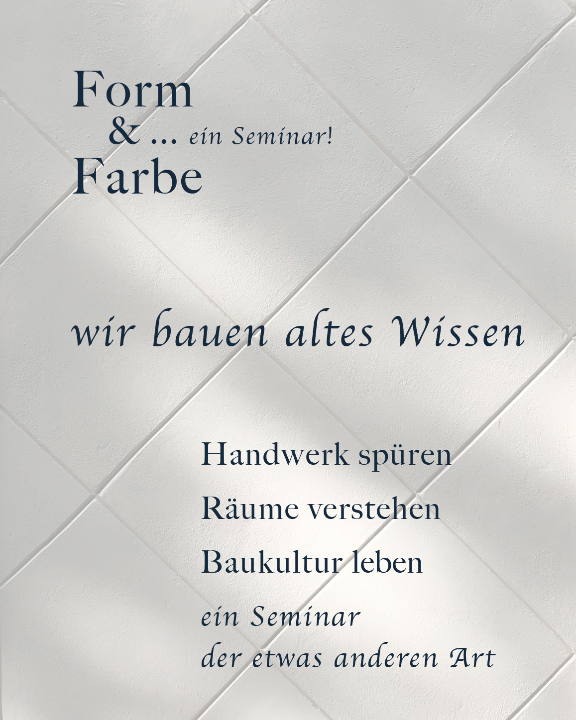 Der innovative Charakter der Seminare liegt in der interdisziplinären Gestaltung: eine Zusammenführung von Kunst, Bauen und Handwerk ist für uns von hohem Wert. Durch die Organisation der Seminare schaffen wir eine Atmosphäre des gemeinsamen Lernens und Erfahrungsaustauschs. Wir betonen nicht nur das Handwerkliche, uns ist auch eine gesellige Zeit und das gemeinschaftliche Erleben besonders wichtig.