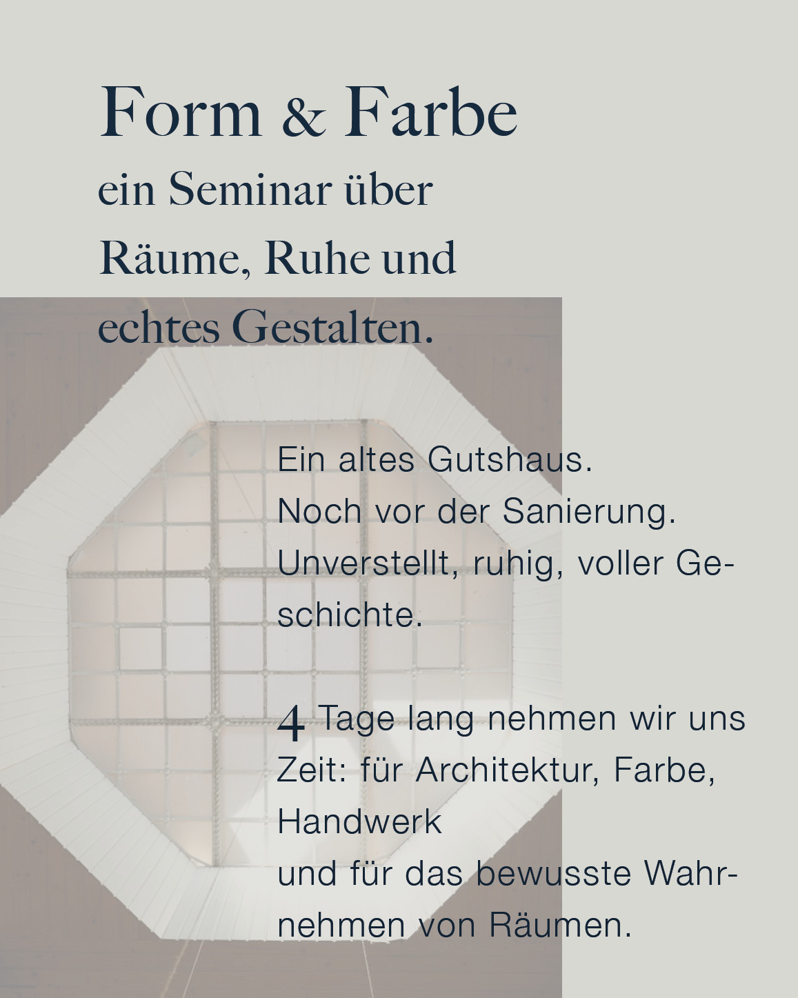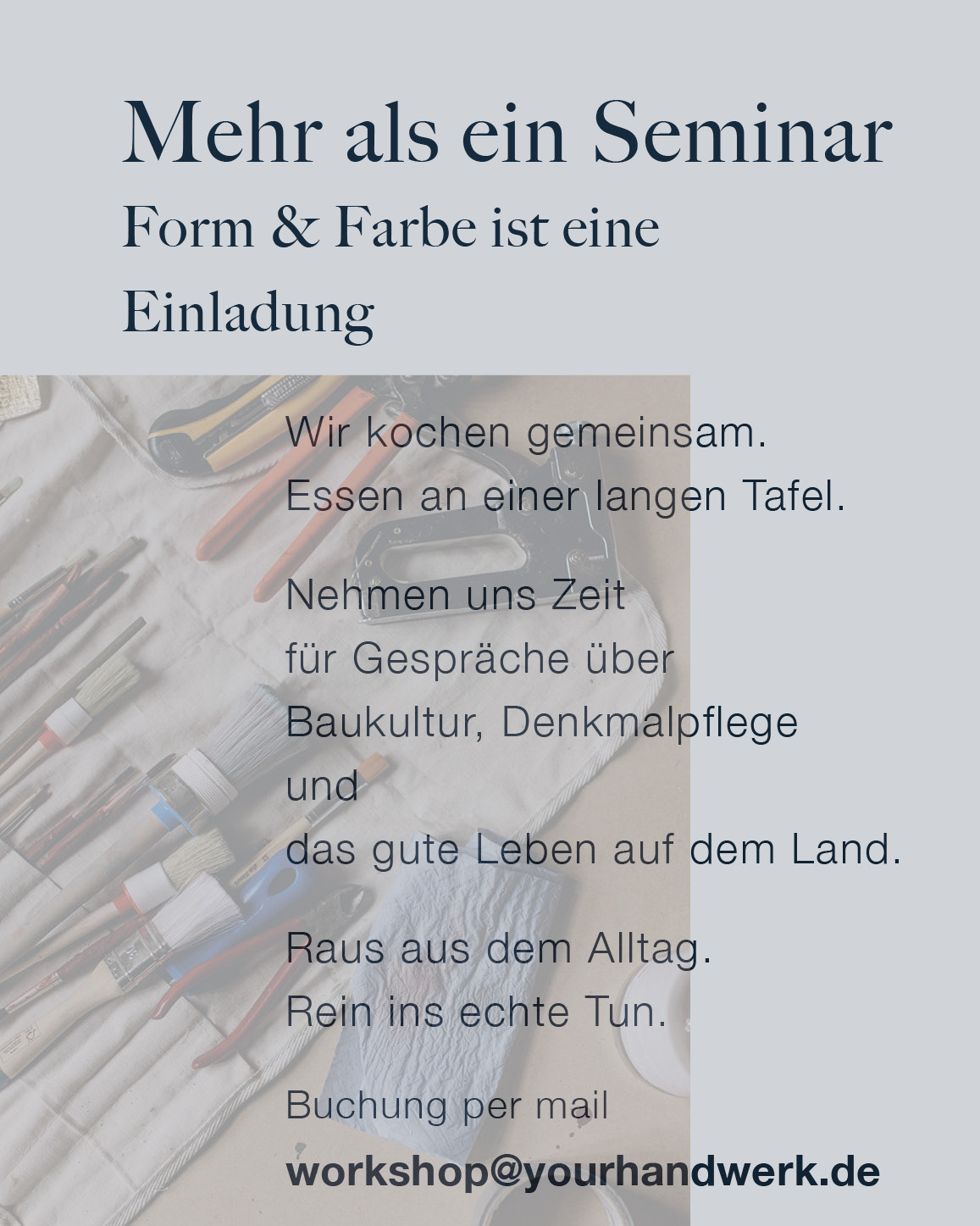 Wir erleben immer wieder, wie befriedigend es ist, nicht nur theoretisch, sondern auch praktisch an einem alten Haus zu arbeiten. Unsere Seminare finden in den historischen Mauern von GUT ROSSIN statt, wir arbeiten, übernachten und essen dort.